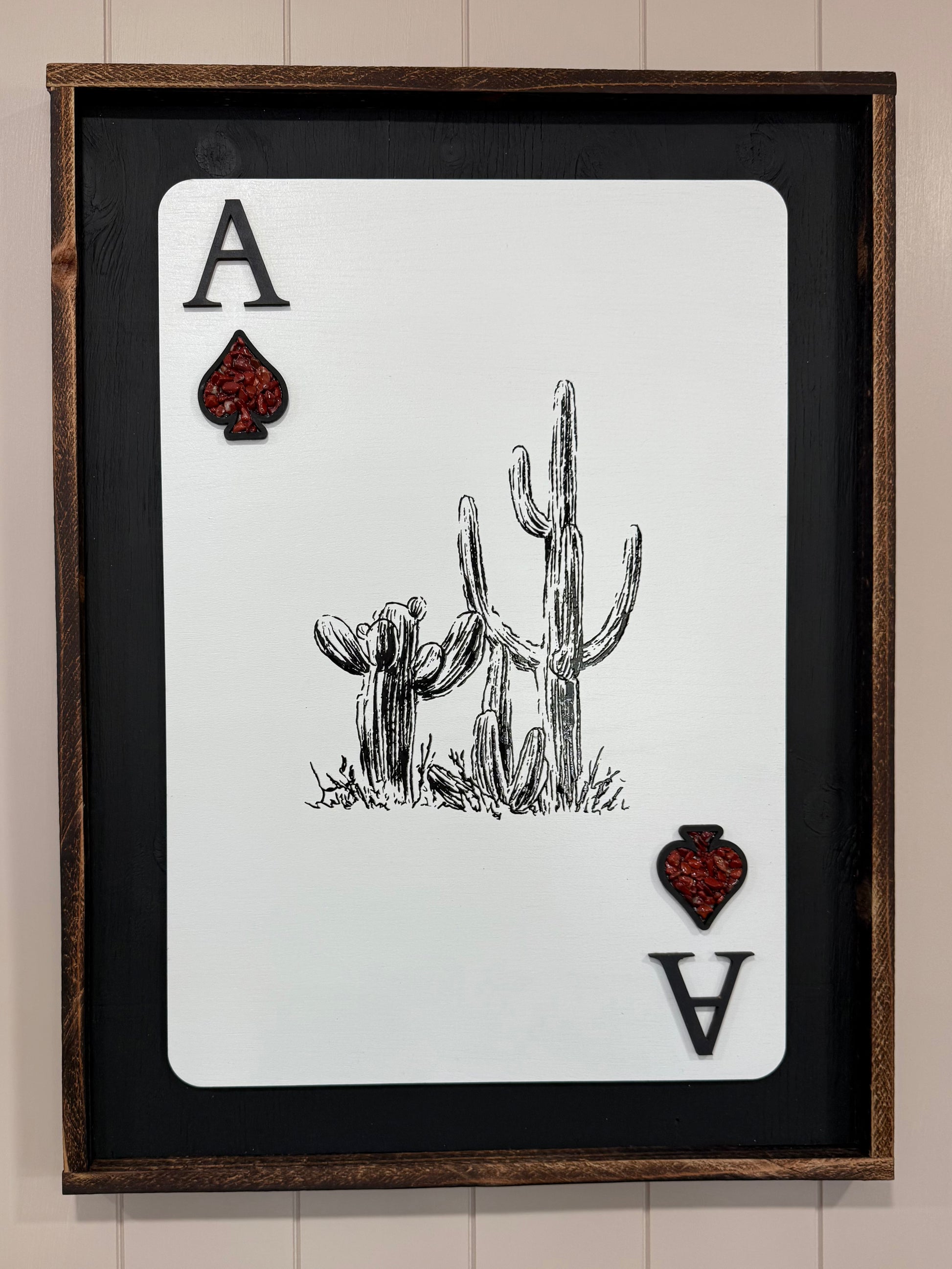 Bet on style with our Play Your Cards Right signs! These playful wall accents feature cheeky red stone inlay that'll make any room feel like the winning hand. Coming in at APPROXIMATELY 20" x 26" (give or take a smidge—each one's a bit of a wild card size-wise!), they're the perfect splash of fun for your home décor. Go ahead, shuffle up your space!